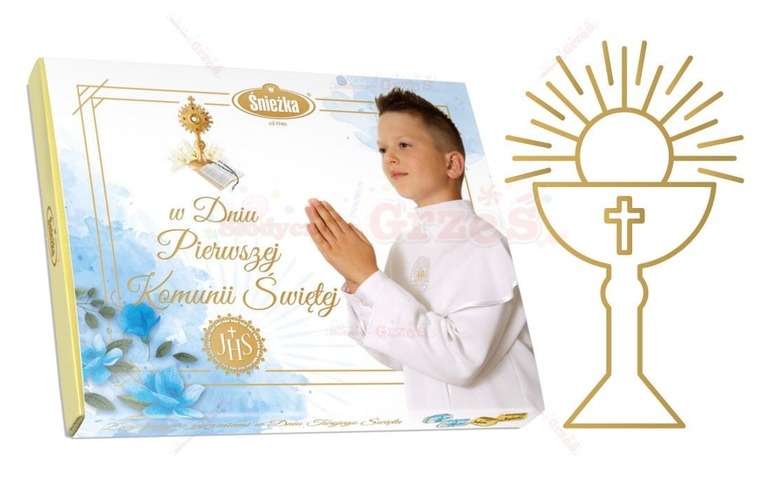 Bombonierka Duet na Komunię dla CHŁOPCA 375g Śnieżka