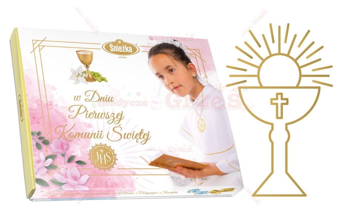 Bombonierka Duet na Komunię dla DZIEWCZYNKI 375g Śnieżka