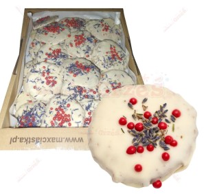 Ciastka PREMIUM CHAŁWETKI dekorowane -biała polewa i lawenda 2,2kg Cukiernia MAX