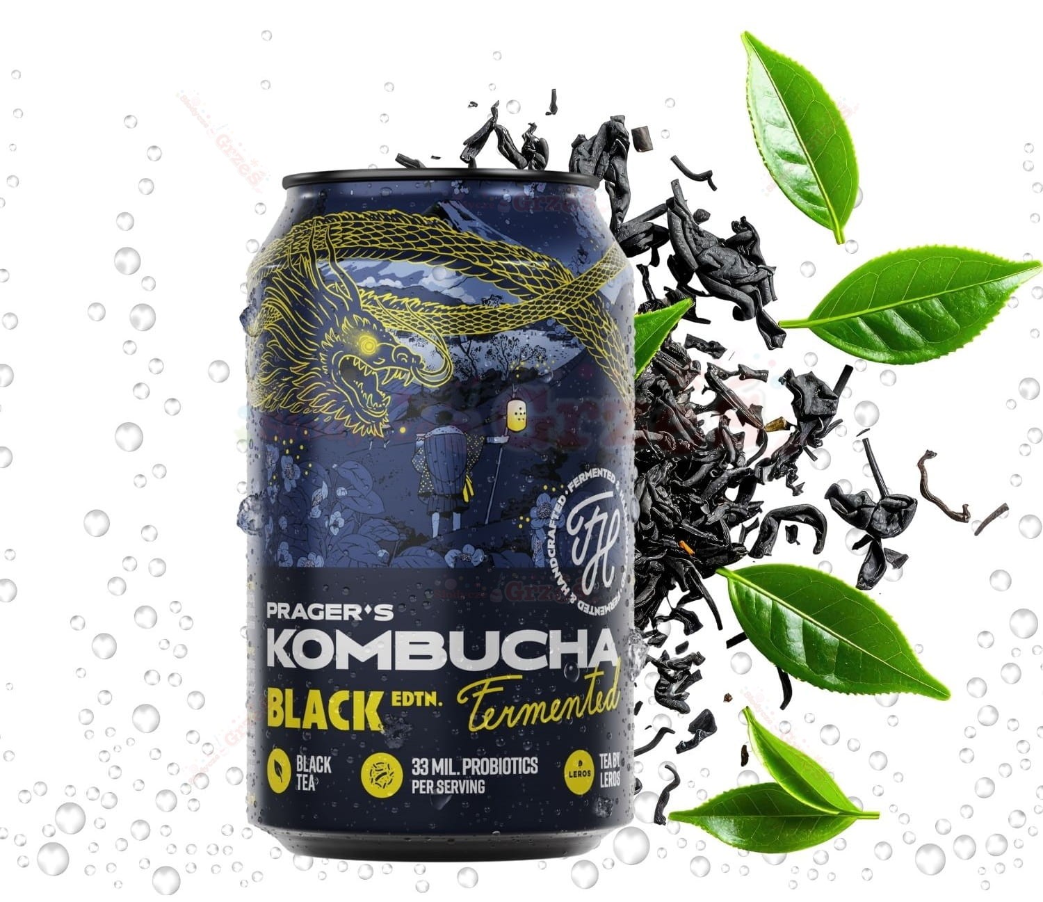 Orzeźwiający napój fermentowany na bazie czarnej herbaty z Malawi – pełen dobroczynnych kultur bakterii. Dzięki unikalnemu procesowi fermentacji kombucha Prager’s zachowuje łagodny smak, pozbawiony nadmiernej kwasowości, a każda puszka dostarcza miliony żywych probiotyków wspierających trawienie i odporność. W 1 puszce znajdziesz conajmniej 33miliony kultur probiotycznych. Kombucha wytworzona jest na bazie herbaty premium dostarczanej przez LEROS - firmę specjalizującą się w uprawie i imporcie najlepszych herbat i ziół z całego świata.