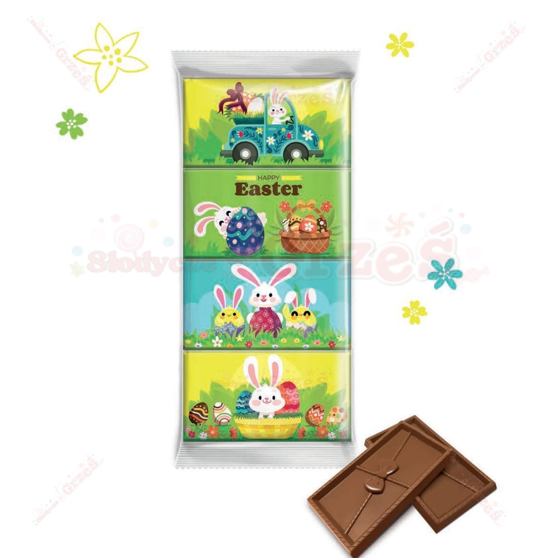 Zestaw 2 małych czekolad mlecznych (15g) w Wielkanocnym wydaniu.