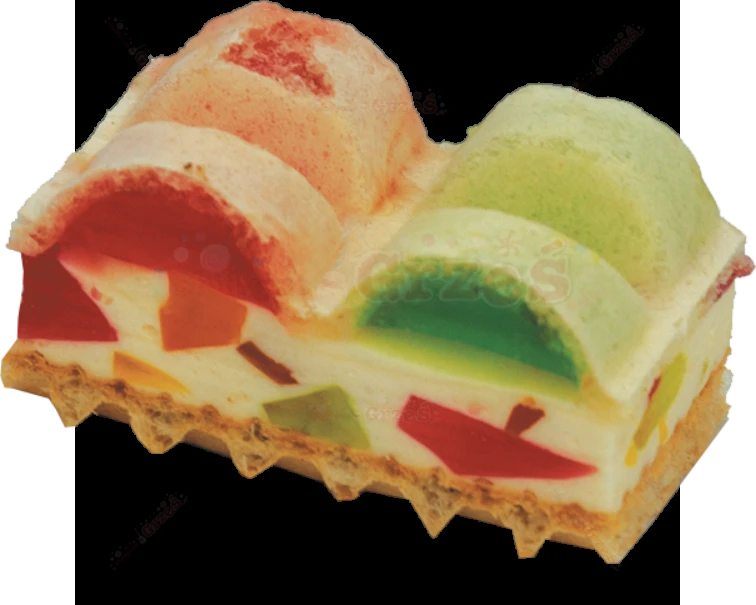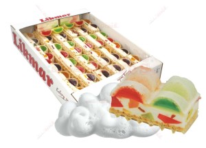 Chrupiące warstwy wafla kryją w sobie puszystą, delikatną piankę, wzbogaconą kawałkami kolorowej galaretki, które dodają każdemu kęsowi soczystej, owocowej nuty i atrakcyjnego wyglądu.