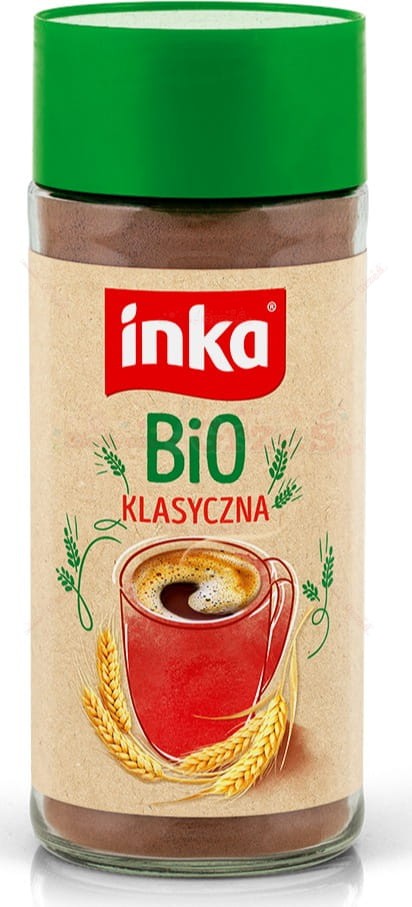 Inka BIO Kawa zbożowa klasyczna to ekologiczna, rozpuszczalna kawa zbożowa klasyczna od marki Inka, która stanowi naturalną i bezkofeinową alternatywę dla tradycyjnej kawy. Ekologiczny i naturalny skład: bazuje na zbożach pochodzących wyłącznie z certyfikowanych upraw ekologicznych – głównie jęczmienia i żyta – oraz korzeniu cykorii.