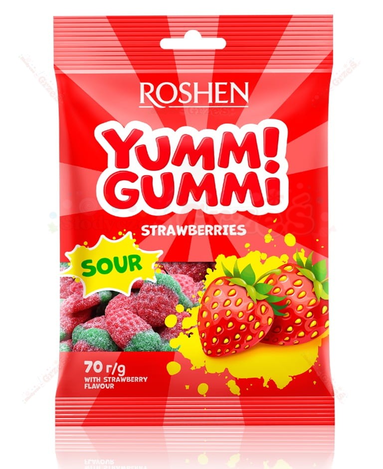 żelki Yummi Gummi Strawberries - kwaśne truskawki 70g Roshen